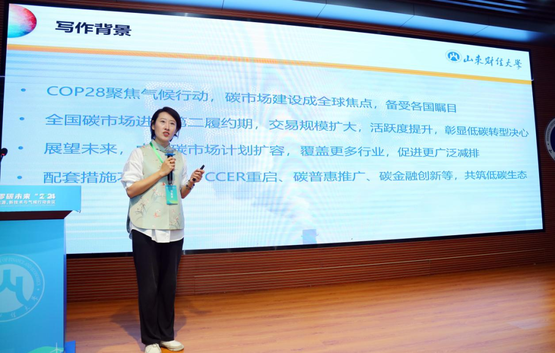 王璟珉代表研创团队对该部蓝皮书的主要内容和主要创新进行了介绍。她指出,蓝皮书基于党的二十大报告对碳排放权交易市场的功能定位,从中国碳排放权交易体系的策略选择出发对第二履约期中国碳市场的发展现状、特征进行了系统分析,并对稳妥有序推进中国碳排放权交易体系建设做出了展望。