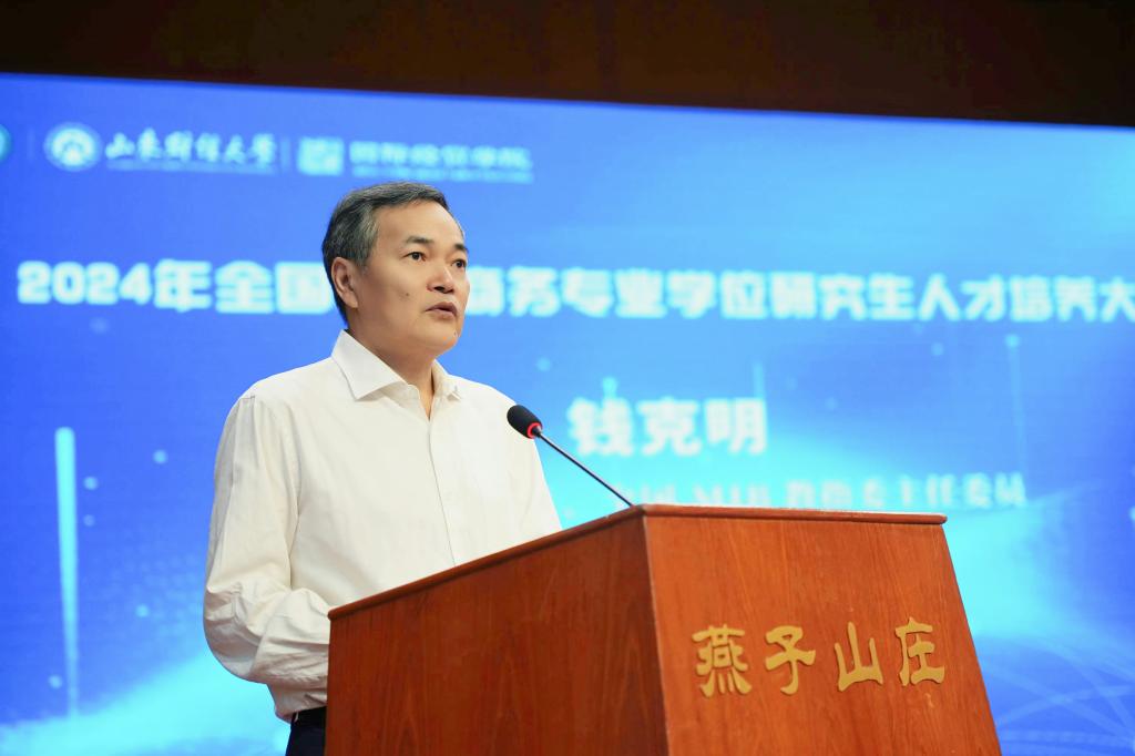 洪俊杰在致辞中对来自全国各培养单位的嘉宾表示欢迎,并简要介绍了我校发展的基本情况。他指出,未来将围绕我校第二次党代会提出的“1139发展思路”,以服务国家和地方战略需求为导向,打造富有山财大特色的国际商务人才培养品牌,为发展新质生产力、推动高质量发展提供强大的人才支撑。他呼吁各位专家学者聚焦当前国际商务专业硕士培养中的突出问题,提出新观点、新举措、新思路,为我国国际商务人才培养出谋划策。